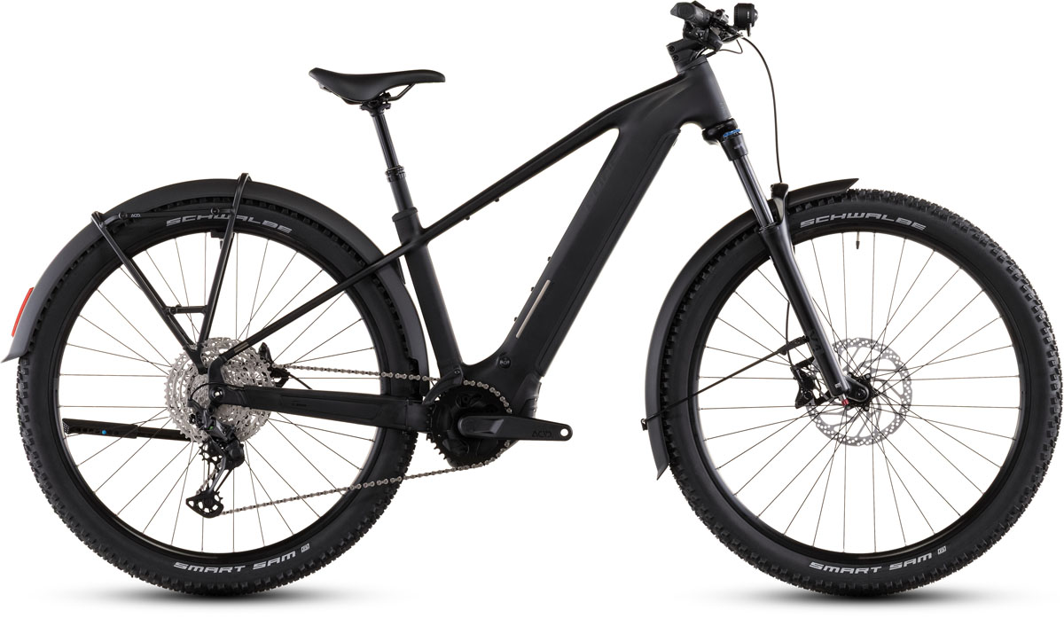Das Beste aus zwei Welten: Das Reaction Hybrid Pro FE kombiniert die Vielseitigkeit eines voll ausgestatteten Tourers mit der Robustheit eines Mountainbikes und dem Support durch einen E-Motor. Dabei hat das Bike neben Schutzblechen, Gepäckträger, Seitenständer und Lichtern noch weitere Highlights auf Lager. Dank dem leistungsstarken Bosch CX Motor und 800 Wh starken Akku sind jede Menge Power und Reichweite garantiert, und zwar auf jeder Route, ob über Asphalt oder im Gelände. Dabei macht die einfach bedienbare Shimano XT 12-fach Schaltung selbst steile Anstiege zum Kinderspiel. Bergab packen die hydraulischen 4-Kolben-Scheibenbremsen von Shimano kraftvoll zu und verzögern die griffigen Schwalbe 2.6 Zoll Reifen zuverlässig und sicher. Für eine Extraportion Fahrkomfort und Kontrolle auf ruppigeren Strecken haben wir eine Luftfedergabel mit 120 mm Federweg (100 mm bei kleinen Rahmengrößen und allen Tiefeinsteiger-Modellen) und eine versenkbare Sattelstütze verbaut.